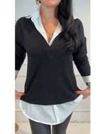 Top Med V-Udskæring Og Lange Ærmer I Kontrastfarver