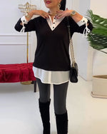 Øverste Hestesko Ærme V-Udskæring Kontrastfarve