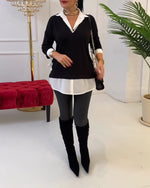 Bluse Med Revers Trekvartærme Kontrastfarve