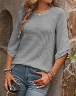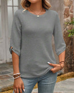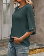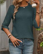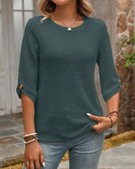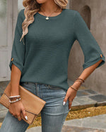 Bluse Med Revers Trekvartærme Kontrastfarve