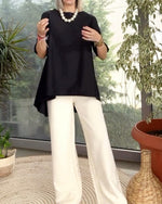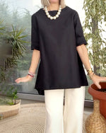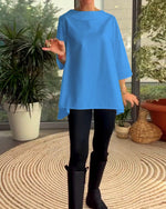SPECIFIKATIONER Top type: Bluser Stil: Afslappet Materiale: Bomuldsblanding Lejlighed: Daglig Halsudskæring: Rund hals Mønstertype: Ensfarvet Ærmetype: Flagermuse-ærmer Ærmelængde: Trekvartærmet Pasform: Almindelig Sæson/årstid: Forår,Sommer Detaljer: Patchwork,Snøre Pakken inkluderer: 1 x Bluse STØRRELSESTABEL (cm) Størrelse Buste Længde ...