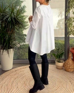 SPECIFIKATIONER Top type: Bluser Stil: Afslappet Materiale: Bomuldsblanding Lejlighed: Daglig Mønstertype: Ensfarvet Ærmelængde: Langærmet Pasform: Almindelig Sæson/årstid: Forår,Sommer Detaljer: Pjusket Pakken inkluderer: 1 x Bluse STØRRELSESTABEL (cm) Størrelse Buste Længde S 97 68 M 101 69.5 L 105 71 XL 111 72.5 2XL 117 74 3XL...
