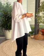 SPECIFIKATIONER Top type: Bluser Stil: Afslappet Materiale: Bomuldsblanding Lejlighed: Daglig Halsudskæring: V-udskæring Mønstertype: Ensfarvet Ærmetype: Vidærmet Ærmelængde: Trekvartærmet Pasform: Almindelig Sæson/årstid: Forår,Sommer Detaljer: Gennemsigtig Pakken inkluderer: 1 x Bluse STØRRELSESTABEL (cm) Størrelse Buste Længde S 97 65 ...