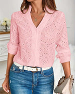 Bluse Med Revers Trekvartærme Kontrastfarve
