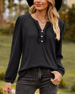 SPECIFIKATIONER Top type: Toppe Stil: Afslappet Materiale: Spandex,Polyester Lejlighed: Daglig Halsudskæring: V-udskæring Ærmetype: Almindeligt ærme Ærmelængde: Langærmet Pasform: Almindelig Sæson/årstid: Forår,Efterår Detaljer: Knapper,Rynket Pakken inkluderer: 1 x Top STØRRELSESTABEL (cm) Størrelse Buste Længde S 97 65 M 101 66.5 L 1...