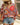 Farverig blomsterbluse i løs pasform med V-udskæring