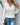 Ensfarvet top i uregelmæssig længde med trekvarte ærmer