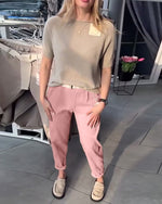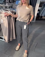 Stilfulde ensfarvede bukser med lommer og tværgående design