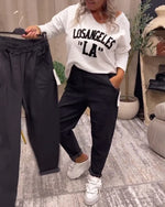 SPECIFIKATIONER Stil: Afslappet Materiale: Polyester Mønstertype: Ensfarvet Buksetype: Lige ben Bukselængde: Ni-punkts Taljetype: Høj talje Pasform: Løs Sæson/årstid: Sommer, Efterår Detaljer: Lomme Lejlighed: Daglig Pakken inkluderer: Bukser STØRRELSESTABEL (cm) Størrelse Længde Talje Hofte S 89 64-85 104 M 90 67-90 108 L 9...