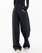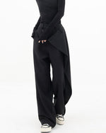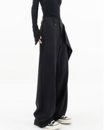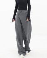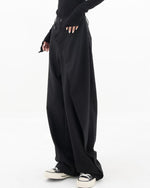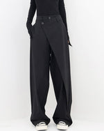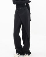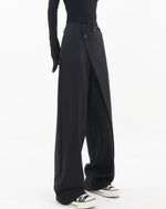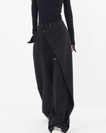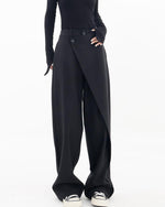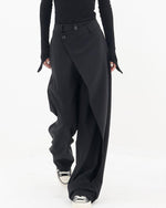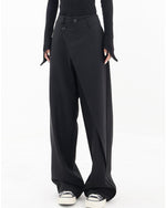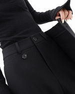 Højtaljede sorte bukser med tværgående lukning