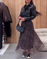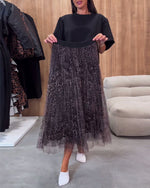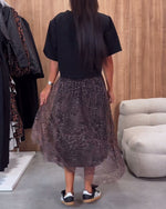 Stilfuld nederdel med gennemsigtigt meshlag