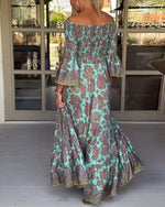SPECIFIKATIONER Stil: Afslappet, Ferie Materiale: 5% Spandex, 95% Polyester Kjoletype: A-linje Kjolelængde: Maxi Halsudskæring: V-udskæring Mønstertype: Tryk Ærmetype: Almindeligt ærme Ærmelængde: Trekvartærmet Detaljer: Knapper, Snøre Pasform: Almindelig Sæson/årstid: Forår, Sommer Lejlighed: Daglig, Ferie Pakken inkluderer: 1 x Kjole STØ...