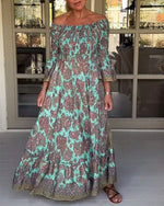 SPECIFIKATIONER Stil: Ferie Materiale: Bomuldsblanding Kjoletype: A-linje Kjolelængde: Maxi Halsudskæring: V-udskæring Mønstertype: Tryk Ærmetype: Almindeligt ærme Ærmelængde: Langærmet Detaljer: Snøre op Pasform: Løs Sæson/årstid: Forår,Sommer Lejlighed: Ferie Pakken inkluderer: 1 x Kjole STØRRELSESTABEL (cm) Størrelse Buste Længde S 97 1...