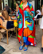 SPECIFIKATIONER Stil: Afslappet, Ferie, Chic Materiale: Bomuldsblanding Kjoletype: Skjorte Kjolelængde: Midi Halsudskæring: Krave Mønstertype: Tryk Ærmetype: Almindeligt ærme Ærmelængde: Langærmet Pasform: Løs Sæson/årstid: Forår, Sommer Lejlighed: Daglig, Ferie Pakken inkluderer: 1 x Kjole STØRRELSESTABEL (cm) Størrelse Buste Længde S 95 ...