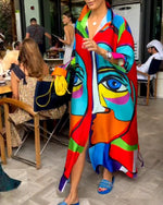 SPECIFIKATIONER Stil: Afslappet, Ferie, Chic Materiale: 5% Spandex, 95% Polyester Kjoletype: A-linje Kjolelængde: Maxi Halsudskæring: V-udskæring Mønstertype: Tryk Ærmetype: Vidærmet Ærmelængde: Langærmet Pasform: Løs Sæson/årstid: Forår, Sommer, Efterår Lejlighed: Daglig, Ferie Pakken inkluderer: 1 x Kjole STØRRELSESTABEL (cm) ...