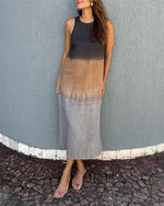 Afslappet lang kjole uden ærmer med blomstermotiv