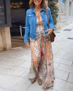 SPECIFIKATIONER Stil: Ferie Materiale: Bomuldsblanding Kjoletype: A-linje Kjolelængde: Maxi Halsudskæring: Krave Mønstertype: Figur Ærmelængde: Langærmet Pasform: Løs Sæson/årstid: Forår, Efterår Lejlighed: Ferie Pakken inkluderer: 1 x Kjole STØRRELSESTABEL (cm) Størrelse Buste Længde S 98 135 M 103 136 L 108 137 XL 114 13...