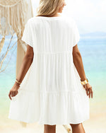 SPECIFIKATIONER Stil: Elegant Materiale: Bomuldsblanding Kjoletype: Shift-kjole Kjolelængde: Maxi Halsudskæring: V-udskæring Mønstertype: Ensfarvet Ærmetype: Almindeligt ærme Ærmelængde: Kortærmet Detaljer: Knapper Pasform: Almindelig Sæson/årstid: Forår, Sommer Lejlighed: Daglig, Ferie Pakken inkluderer: 1 x Kjole STØRRELSESTABEL (cm) ...