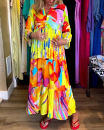 Lang farverig kjole i afslappet pasform med vide ærmer
