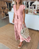 SPECIFIKATIONER Stil: Elegant Materiale: Bomuldsblanding Kjoletype: Shift-kjole Kjolelængde: Maxi Halsudskæring: V-udskæring Mønstertype: Ensfarvet Ærmetype: Almindeligt ærme Ærmelængde: Kortærmet Detaljer: Knapper Pasform: Almindelig Sæson/årstid: Forår, Sommer Lejlighed: Daglig, Ferie Pakken inkluderer: 1 x Kjole STØRRELSESTABEL (cm) ...
