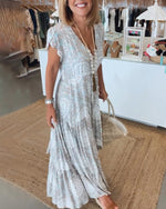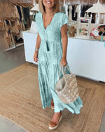 SPECIFIKATIONER Stil: Afslappet, Ferie Materiale: 100% Polyester Kjoletype: A-linje Kjolelængde: Maxi Halsudskæring: V-udskæring Mønstertype: Tryk Ærmetype: Almindeligt ærme Ærmelængde: Halve ærmer Pasform: Almindelig Sæson/årstid: Forår, Sommer Lejlighed: Daglig, Ferie Pakken inkluderer: 1 x Kjole STØRRELSESTABEL (cm) Størrelse Bu...