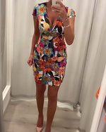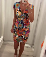 SPECIFIKATIONER Stil: Elegant, Fest Materiale: 100% Polyester Kjoletype: A-linje Kjolelængde: Maxi Halsudskæring: V-udskæring Mønstertype: Tryk Ærmetype: Puf-ærmer Ærmelængde: Halve ærmer Detaljer: Patchwork, Rynket Pasform: Almindelig Sæson/årstid: Forår, Sommer, Efterår Lejlighed: Daglig, Fest Pakken inkluderer: 1 x Kjole STØRRELSESTABEL...