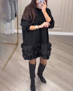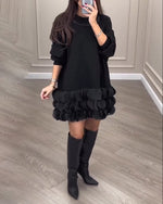 SPECIFIKATIONER Stil: Afslappet Materiale: Bomuldsblanding Kjoletype: A-linje Kjolelængde: Knælængde Halsudskæring: Rund hals Mønstertype: Prikket,Ensfarvet Ærmetype: Almindeligt ærme Ærmelængde: Langærmet Detaljer: Patchwork,Lomme Pasform: Almindelig Sæson/årstid: Efterår,Vinter Lejlighed: Daglig Pakken inkluderer: 1 x Kjole STØRRELSESTABEL (...