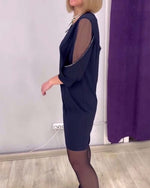 V-hals off-shoulder elegant kjole med pailletter