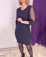 Kjole med gennemsigtige ærmer og V-halsudskæring
