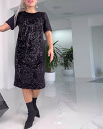 Fløjlskjole Med Paljetter Og Vid Udsnit