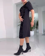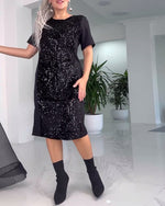 Elegant rundhalset kjole med pailletter