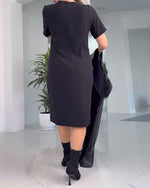 SPECIFIKATIONER Stil: Fest Materiale: 96% polyester, 4% spandex Kjoletype: Shift-kjole Kjolelængde: Knælængde Halsudskæring: V-udskæring Mønstertype: Ensfarvet Ærmetype: Almindeligt ærme Ærmelængde: Halve ærmer Pasform: Almindelig Sæson/årstid: Efterår, Vinter Lejlighed: Daglig Pakken inkluderer: 1 x Kjole STØRRELSESTABEL (cm) ...