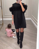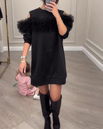SPECIFIKATIONER Stil: Elegant, Fest Materiale: 100% Polyester Kjoletype: Shift-kjole Kjolelængde: Over knæet Halsudskæring: Rund hals Mønstertype: Ensfarvet Ærmetype: Almindeligt ærme Ærmelængde: Langærmet Detaljer: Patchwork Pasform: Almindelig Sæson/årstid: Forår, Efterår, Vinter Lejlighed: Daglig, Fest Pakken inkluderer: 1 x Kjole STØR...
