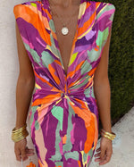 Elegant kjole med dyb V-udskæring og print