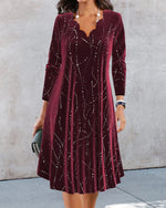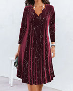Stilfuld V-halset kjole med geometrisk mønster