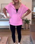 Sweatshirt med hætte og lynlås i ensfarvet afslappet design