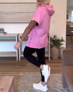 Lyserød hættetrøje med hulmønstrede ærmer