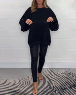 Enkel ensfarvet sweatshirt med lanterneærmer