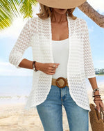 Ensfarvet blondecardigan med trekvarte ærmer