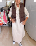 SPECIFIKATIONER Kategori: Vatterede jakker Stil: Afslappet Materiale: Bomuldsblanding Lejlighed: Daglig Mønstertype: Ensfarvet Ærmelængde: Uden ærmer Pasform: Almindelig Sæson/årstid: Forår,Efterår,Vinter Detaljer: Lomme,Snøre,Lynlås Pakken inkluderer: 1x vatteret jakke STØRRELSESTABEL (cm) Størrelse Buste Længde S 95 100 M 100 101....
