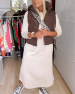 SPECIFIKATIONER Kategori: Frakker Stil: Afslappet Materiale: Polyester Lejlighed: Daglig Halsudskæring: V-udskæring Mønstertype: Ensfarvet Ærmelængde: Uden ærmer Pasform: Almindelig Sæson/årstid: Efterår,Vinter Detaljer: Knapper Pakken inkluderer: 1x frakke STØRRELSESTABEL (cm) Størrelse Buste Længde Talje Skulder S 88 57 72 4...