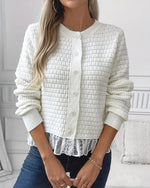 SPECIFIKATIONER Kategori: cardigan Stil: Elegant Materiale: Bomuldsblanding,Snøre Lejlighed: Daglig Mønstertype: Ensfarvet Ærmetype: Almindeligt ærme Ærmelængde: Trekvartærmet Pasform: Almindelig Sæson/årstid: Forår,Sommer,Efterår Detaljer: Patchwork,Udhulende Pakken inkluderer: 1x cardigan STØRRELSESTABEL (cm) Størrelse Buste Længde ...
