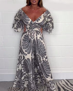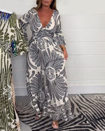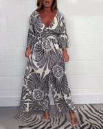 Stilfuldt jumpsuit med print og dyb V-udskæring