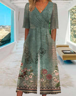 Stilfuldt jumpsuit med print og dyb V-udskæring
