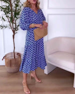 SPECIFIKATIONER Stil: Afslappet Materiale: Bomuldsblanding Kjoletype: A-linje Kjolelængde: Maxi Halsudskæring: V-udskæring Mønstertype: Tryk Ærmetype: Drop Shoulder Ærmelængde: Trekvartærmet Detaljer: Knapper Pasform: Almindelig Sæson/årstid: Forår,Sommer Lejlighed: Daglig Pakken inkluderer: 1 x Kjole STØRRELSESTABEL (cm) Størrelse Buste Læn...