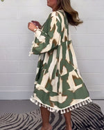 SPECIFIKATIONER Stil: Afslappet Materiale: Bomuldsblanding Kjoletype: Shift-kjole Kjolelængde: Maxi Halsudskæring: V-udskæring Mønstertype: Tryk Ærmetype: Drop Shoulder Ærmelængde: Langærmet Detaljer: Knapper Pasform: Almindelig Sæson/årstid: Forår,Efterår,Vinter Lejlighed: Daglig Pakken inkluderer: 1 x Kjole STØRRELSESTABEL (cm) Størrelse B...