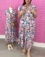 SPECIFIKATIONER Stil: Afslappet Materiale: Bomuldsblanding Kjoletype: A-linje Kjolelængde: Maxi Halsudskæring: V-udskæring Mønstertype: Tryk Ærmetype: Drop Shoulder Ærmelængde: Trekvartærmet Detaljer: Knapper Pasform: Almindelig Sæson/årstid: Forår,Sommer Lejlighed: Daglig Pakken inkluderer: 1 x Kjole STØRRELSESTABEL (cm) Størrelse Buste Læn...