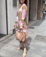 Kjole V-Udskæring Langærmede Patchwork