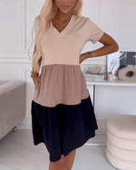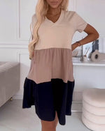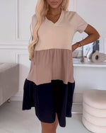 SPECIFIKATIONER Stil: Afslappet Materiale: Bomuldsblanding Kjoletype: Shift-kjole Kjolelængde: Over knæet Halsudskæring: Rund hals Mønstertype: Farveblok Ærmetype: Almindeligt ærme Ærmelængde: Kortærmet Detaljer: Lomme Pasform: Almindelig Sæson/årstid: Forår,Sommer Lejlighed: Daglig Pakken inkluderer: 1 x Kjole STØRRELSESTABEL (cm) Størrelse...