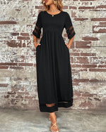 SPECIFIKATIONER Stil: Afslappet Materiale: Bomuldsblanding Kjoletype: Shift-kjole Kjolelængde: Maxi Halsudskæring: Rund hals Mønstertype: Ensfarvet Ærmetype: Almindeligt ærme Ærmelængde: Halve ærmer Detaljer: Flænge Pasform: Almindelig Sæson/årstid: Forår,Sommer Lejlighed: Daglig Pakken inkluderer: 1 x Kjole STØRRELSESTABEL (cm) Størrel...